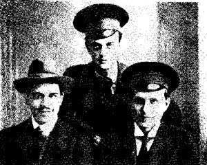 Студент Сергей Вавилов (слева) со старыми друзьями по Коммерческому училищу. Справа—Борис Себенцов.
