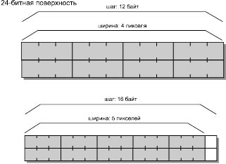 Поверхностью (surface) в DirectDraw называется прямоугольная область памяти, обычно содержащая графические данные. Блок памяти, изображающий поверхность, может находиться как в системной, так и в видеопамяти. Хранение поверхностей в видеопамяти обычно повышает скорость работы программы, поскольку большинство видеокарт не может обращаться к системной памяти напрямую. Поверхности делятся на несколько типов. Простейшими являются внеэкранные (off-screen) поверхности. Внеэкранная поверхность может находиться как в видеопамяти, так и в системной памяти, но не отображается на экране. Такие поверхности обычно используются для хранения спрайтов и фоновых изображений. Первичная (primary) поверхность, напротив, представляет собой участок видеопамяти, отображаемой на экране. Любая программа DirectDraw, обеспечивающая графический вывод, имеет первичные поверхности. Первичная поверхность должна находиться в видеопамяти. Первичные поверхности часто бывают составными (complex), или, что то же самое, переключаемыми (flippable). Переключаемая поверхность может участвовать в переключении страниц — операции, при которой содержимое всей поверхности мгновенно отображается на экране с помощью специальных аппаратных средств. Переключение страниц используется во многих графических программах как с поддержкой DirectDraw, так и без, поскольку оно обеспечивает очень гладкую анимацию и устраняет мерцание. Переключаемая первичная поверхность на самом деле состоит из двух поверхностей, одна из которых отображается на экране, а другая — нет. Невидимая поверхность называется вторичным буфером (back buffer). При переключении страниц поверхности меняются местами: та, которая была вторичным буфером, отображается на экране, а та, что ранее отображалась, превращается во вторичный буфер. Как внеэкранные, так и первичные поверхности делятся на две разновидности: палитровые (palettized) и беспалитровые (non-palettized). Палитровая поверхность вместо конкретных значений цветов содержит индексы в цветовой таблице, которая называется палитрой. В DirectDraw палитровыми являются только 8-битные поверхности. Поверхности с глубиной пикселей, равной 16, 24 и 32 битам, являются беспалитровыми. Вместо индексов в них хранятся фактические значения цветов. Поскольку в каждом пикселе беспалитровой поверхности находятся реальные цветовые данные, необходимо знать, в каком формате хранятся отдельные пиксели поверхностей. Формат пикселя описывает способ хранения красной, зеленой и синей (RGB) составляющих. Он зависит от глубины пикселей, видеорежима и аппаратной архитектуры. Форматы пикселей подробно рассматриваются в главе 5.Блиттинг