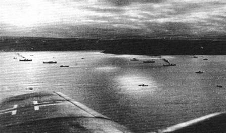 Корабли союзного конвоя в водах Кольского залива. (Фото из архива Г. Г. Шмидта),