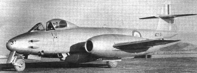 «Метеор» Т.Мк 7 с/и A77-7Q2 использовался для переучивания пилотов 77-й A3 на реактивную технику.
