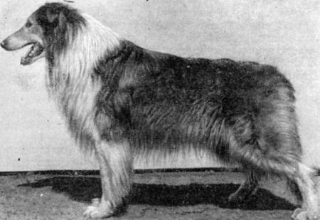 Конституция крепкая — грубая. Тип высшей нервной деятельности уравновешенный — спокойный. Высота в холке: у кобелей не меньше 60 см, у сук не меньше 58 см высота в крестце на 1–2 см меньше. Индекс растянутости 108–110. Аллюр — низкая стелющаяся рысь и галоп. Костяк массивный, хорошо развитый. Мускулатура массивная, плотная. Кожа толстая, эластичная, без складок. Шерсть густая, грубая, хорошо защищающая собаку в суровых арктических условиях. Подшерсток длинный, густой. Покровный волос резко выделяется на шее, вдоль хребта, на плечах и бедрах. Встречаются собаки с более мягким и длинным волосом. Длинный и жесткий волос растет и на лапах, между пальцами, защищая подушечки пальцев от непосредственного соприкосновения со снегом. Масть разнообразная: черная, белая, серая, бурая, пегая и пятнистая этих же цветов. Голова с широким и массивным черепом. Лоб плоский, с небольшим, но заметным переходом к морде. Морда короткая, массивная, широкая у основания, заостренная. Губы плотно прилегающие. Мочка носа черная или коричневая. Уши стоячие, не очень высоко поставленные, относительно короткие, широкие у основания, с тупыми концами. Глаза небольшие, овальной формы, косо поставленные, темные. Зубы крупные, прикус ножницеобразный. Шея короткая, массивная, нормально поставленная. Грудь глубокая, широкая, длинная, с несколько выпуклыми ребрами. Холка сильно развитая, резко выступает над линией спины. Спина широкая, прямая, крепкая. Поясница короткая широкая, мускулистая немного выпуклая. Круп широкий, мускулистый, относительно короткий, почти горизонтально поставленный. Живот умеренно подтянут. Передние конечности характеризуются удлиненной лопаткой и несколько укороченными плечевой костью и предплечьями. Углы плече-лопаточных сочленений приближаются к 100°. Предплечья прямые, параллельно поставленные. Запястья широкие, сильные. Пясти массивные, поставленные наклонно. Задние конечности (при осмотре сзади) прямые и параллельные. Бедра длинные, с сильной мускулатурой. Голени короткие, сильные. Скакательные суставы широкие, довольно прямо поставленные, находятся на одном уровне с седалищными буграми. Плюсны массивные, почти отвесно поставленные. Лапы крупные, сжатые в комок. Прибылые пальцы должны быть удалены у щенков. Хвост по длине доходит до скакательного сустава, иногда немного короче. По форме хвост бывает серпом, поленом и кольцом. В ряде районов принято обрезать хвосты собакам этой породы.Колли, или шотландская овчарка (рис. 18). Колли — типичная представительница группы европейских овчарок, культивировавшихся веками не для охраны стад от хищников, а для пастьбы.