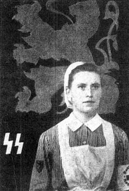 Плакат, призывающий фламандских женщин поступать на службу в медицинские вспомогательные подразделения, чтобы поддержать голландских добровольцев, служивших с войсками СС на Восточном фронте в бригаде «Лангемарк» (ставшей позднее дивизией). В верхней части правого рукава этой медсестры можно заметить нашивку с национальной эмблемой Фландрии в виде черного льва на желтом фоне. Она носит свою версию нарукавной повязки DRK с красным крестом. (Отто Шпронк)