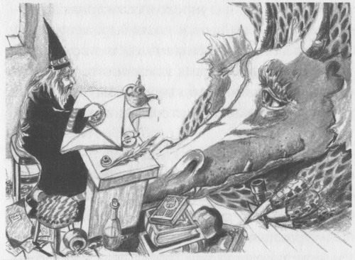Фемистокл на мгновение задумчиво поглядел в окно — остальная часть Рангарига находилась снаружи. Огромный дракон лениво помахивал гигантскими крыльями, чтобы удержаться в воздухе. «Он сам себя, наверное, считает крылатым вестником», — подумал волшебник и снова обратился к письму. Между тем почерк в нём будто бы изменился, и у Фемистокла появилось ощущение, что там добавилось несколько восклицательных знаков. — Это несправедливо! — продолжал возмущаться он. — Всю свою жизнь я служил людям и животным этой страны. Многим помогал, а уж скольких защитила моя магия… И в благодарность за всё меня отправляют на свалку! — Ну, полно, — с упрёком сказал Рангариг. — Я бы не стал говорить в таких выражениях. Насколько я знаю, в нём речь идёт о том… — он кивнул в сторону письма, которое утвердительно махало уголками, — что тебя назначают новым руководителем знаменитого Университета Драгенталь. — Знаменитый университет, пфф! — скривился Фемистокл. — Это всего-навсего паршивый интернат где-то на краю света, а что касается его репутации… — Прежде чем ты договоришь, — перебил его Рангариг почти ласковым голосом, — может быть, тебе напомнить, что ты сам когда-то в нём учился волшебству. Как и все драконы моего поколения, кстати сказать. — Ну да… только тогда всё было совсем по-другому, — не очень уверенно стал оправдываться Фемистокл — он и в самом деле про это позабыл. — Ах вот как? — Рангариг недоверчиво прищурил один глаз. — Ну, потому что… потому что, — замялся Фемистокл. — Потому что там тогда было всё по-другому, — упорствовал он. — С тех пор прошла целая вечность. И ты же не станешь сравнивать себя с нынешними учениками. — Это почему же? — осведомился Рангариг. — Потому что тогда мы были другими и всё тут, — отрезал Фемистокл. — Раньше — да, Драгенталь был первой школой, куда направляли драконов, как только они начинали изрыгать огонь! И другие воспитанники с магическим даром прилежно учились, а также уважали своих родителей и педагогов. — А нынче молодые люди хотят только развлекаться, — сказал Рангариг. И хотя он с серьёзным видом качал головой, его глаза насмешливо поблёскивали, словно Фемистокл случайно отпустил удачную шутку. — Никто больше не желает трудиться, они строптивы и совсем не уважают своих учителей. — Точно! — торжествуя, подхватил Фемистокл. — Видишь, ты сам говоришь! — Нет, — возразил Рангариг. — Так говорил мне мой учитель, когда я, совсем юный, пришёл в эту школу. — Ох, — вздохнул Фемистокл. — Да-да, — подтвердил дракон. — И я припоминаю одного ученика, который едва не вылетел из школы, потому что он… — Ну ладно, ладно… — перебил его Фемистокл. Ему вдруг почему-то стало неприятно говорить на эту тему. Он снова забегал по комнате, словно тигр в клетке, — на этот раз безо всякого ущерба для мебели и стен, но время от времени бросая испепеляющие взгляды на письмо, которое все ещё висело в воздухе. — Я не позволю отправить себя в утиль, — пробормотал он. — Я ведь самый главный волшебник Сказочной Луны! Хранитель магии! — Притом уже довольно давно, насколько я помню, — вставил Рангариг. — Что ты хочешь этим сказать? Фемистокл остановился. Его глаза воинственно сверкали. — Может быть, настало время уступить место более молодым? — ответил Рангариг. — То есть ты утверждаешь, что я слишком стар?! — ахнул Фемистокл. — Да что же это…