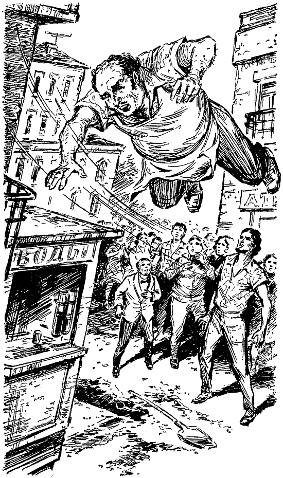 Опять умолкла музыка. Нарастала зловещая барабанная дробь — цирковой сигнал, возвещающий, что сейчас будет нечто опасное, необычайное, самое, самое главное… Отчетливый голос из динамиков объявил: — Кто желает подвергнуться непосредственному телекинезу, просим на манеж! Тишина. Тут всегда возникала заминка: уж очень рискованно… Ур терпеливо ждал. — Просим желающих, — повторил голос. — Опыт совершенно безопасен. В одном из секторов произошло движение: через барьер перелезала тоненькая девушка в бело-розовом брючном костюме. Лилипут поспешил к ней, подвел к Уру. Теперь они стояли на расстоянии трех шагов друг против друга. Девушка слабо улыбалась, в ее прозрачных глазах была растерянность. Вдруг она испугалась: уж очень тяжелым, давящим стал взгляд артиста Уриэля, уж очень изменилось его лицо. Неживым, каменным оно стало каким-то… В следующий миг девушка, тихонько ойкнув, оторвалась от мягкого ковра и медленно-медленно поплыла по воздуху метрах в двух от манежа. Вправо… влево… Все у нее внутри как бы замерло, схваченное тугой пружиной страха. Сколько продолжался ее полет? Минуту, две? Вдруг она ощутила под ногами ковер. Теперь она стояла, беспомощно улыбаясь, а вокруг бушевал прибой аплодисментов, восторженных выкриков. К ней подошел лилипут, чтобы отвести на место. У барьера к ней протянулось несколько доброжелательных рук, чтобы помочь перебраться в надежно отгороженный Мир Зрителей. Рукоплескания не ослабевали. Ур стоял, еле заметно кивая то в одну сторону, то в другую. И он уже повернулся было, чтобы уйти с манежа, как вдруг раздался из рядов громкий, излишне громкий голос с нехорошей хрипотцой: — Одну минуточку, гражданин артист! Стихли аплодисменты, все взоры обратились к вставшему в шестом или седьмом ряду дядечке в соломенной шляпе и желто-зеленой рубахе навыпуск. — Одну минуточку, — провозгласила соломенная шляпа. — Тут ясность внести надо. Она — ихняя знакомая. Она официантка с кафе, где гражданин артист с лилипутом этим обедают. — Ну и что? — крикнул кто-то. — Минуточку, я не кончил! — строго сказала шляпа. — Она подговоренная. Заранее у них условлено. Жульничество это! Цирк загудел. — Ну, обедает там — что из этого? — Точно, фокус все это! Зеркала у них спрятаны! А она тоже циркачка! — Обман, обман!.. Тут произошла неожиданность. Будто реактивной тягой выбросило гражданина в соломенной шляпе из амфитеатра. Он взвился над головами соседей, закричал дурным голосом, замахал руками и ногами. Ур резко повернулся и, пошатываясь, пошел к форгангу. В тот же миг скандальный гражданин упал яичком на ковер. Быстро оглядевшись, он под громовые раскаты хохота пополз на четвереньках к упавшей во время полета шляпе и обеими руками натянул ее на голову.
