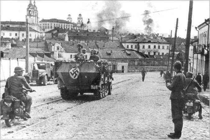Две фотографии сделаны в Минске в начале июли 1441 г на одной и той же улице с интервалом и несколько минут. На одном снимке и кадр попал тонн Pz. Kpfw. 38(t) с топливной бочкой ни прицепе. На другом снимке — полугусеничный бронетранспортёр Sd. Kfz. 251, фашистский флаг на броневике используется как средство быстрой идентификации с воздуха. На бронетранспортёры установлены направляющие для «Stuka zu Fuss».