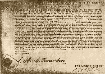 Каперское поручение, выданное адмиралом Франции Луи Александром де Бурбоном на ведение военных действий против Англии, Голландии, Священной Римской империи и их союзников. Конец XVII в.