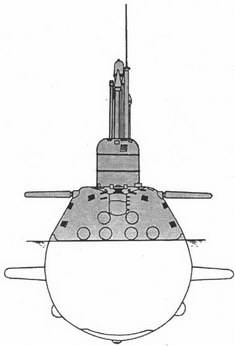 ПЛА пр. 705 (шифр «Лира») СКБ-143 (СПМБМ «Малахит») разработало как «опытную комплексно-автоматизированную скоростную ПЛАТ ПЛО с торпедным вооружением». Главные конструкторы М. Г. Русанов и В. В. Ромин. Корабль являлся ПЛА второго поколения. Он предназначался для поиска, обнаружения и слежения за ПЛАРБ и АУГ противника, их уничтожения с началом боевых действий. Легкий и прочный корпуса изготовлялись из титановых сплавов. Обводы легкого корпуса веретенообразные, кругового сечения, с ограждением выдвижных устройств «лимузинного» типа, с закрывающимися шпигатами pi вырезами. Прочный корпус делился водонепроницаемыми переборками на шесть отсеков и был образован из цилиндров и правильных усеченных конусов. Носовые горизонтальные рули убирались в легкий корпус и располагались ниже КВЛ. Впервые в мире на пр. 705 было внедрено системное комплексно-автоматизированное управление всеми механизмами и системами корабля, позволявшее сократить численность экипажа более чем в три раза (по сравнению с ПЛА первого поколения). Для достижения 40-узловой скорости при ограниченном водоизмещении корабль оснастили реактором с ЖМТ. Впервые в отечественном судостроении на лодках данного проекта внедрили блочную ПТУ. Ее особенностью являлось использование развитых конструкций корпусов секций главного конденсатора и маслобака редукторной передачи в качестве рамных конструкций, на которые устанавливалось основное и вспомогательное оборудование ГТЗА и турбогенераторов с навешенными питательными насосами. Внутренние объемы рамных конструкций использовались в качестве цистерн и объемов для прокладки трубопроводов ПТУ. Головной корабль пр. 705 (К-64) был заложен на Ленинградском заводе «Судомех»[26*]. Он имел ППУ типа ОК-550 с разветвленными коммуникациями первого контура, тремя паропроводами и тремя циркуляционными насосами. Во время проведения испытаний на лодке вышли из строя две автономные петли первого контура, а затем начал затвердевать теплоноситель первого контура. Остановить этот процесс не удалось и реактор пришлось заглушить. В легком корпусе К-64 были обнаружены многочисленные трещины. Серийные корабли строились по пр. 705 и пр. 705К. Лодки пр. 705К имели блочную ППУ марки БМ-40А (с двумя ПГ и параллельно работающими циркуляционными турбонасосами сплава вместо трех ПГ и трех насосов у ОК-550), смонтированную на фундаменте с двойной системой амортизации (ППУ типа ОК-550 была смонтирована на обычном фундаменте балочного типа). Длина прочного корпуса пр. 705К соответствовала мине прочного корпуса опытной ПЛА К-64, в то время как на серийных кораблях пр. 705 она была увеличена на две шпации в районе реакторного отсека. ТЗА и наиболее шумящие механизмы разместили на пневматических амортизаторах. В качестве резервных двигателей использовались ЭД мощностью по 100 кВт, расположенные в гондолах на кормовых горизонтальных стабилизаторах. Для сокращения габаритов и массы электрооборудования на кораблях пр. 705 и 705К использовали ЭЭС переменного тока повышенной частоты 400 Гц, напряжением 380 В. На этих лодках, впервые в отечественной практике, применили пневмогидравлические торпедные аппараты с глубиной стрельбы от перископной до предельной. Впервые в мировой практике лодка имела всплывающую спасательную рубку (камеру), вмещавшую в себя весь экипаж. Подводные л
