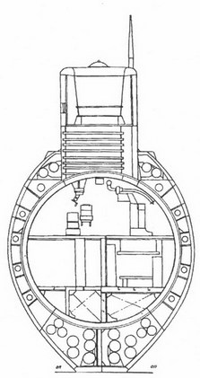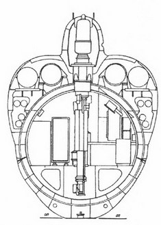 ПЛА пр. 971 поперечное сечение по реакторному отсеку