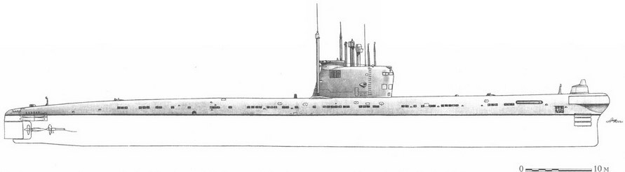 21* На пр. 705К. 22* По другим данным, 350 м. 23* По другим данным, 420 м. В 1 томе «Истории Санкт-Петербургского морского бюро машиностроения „Малахит"» (СПб.: «Гангут», 2002) указано, что на стадии эскизного проекта рассматривалась глубина 400 м, а «глубина погружения лодки могла достичь… 500 м». 24* Реально не превышала 39 уз. 25* Возможны варианты.