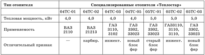 Таблица 2.8. Характеристики специализированных отопителей «Теплостар»