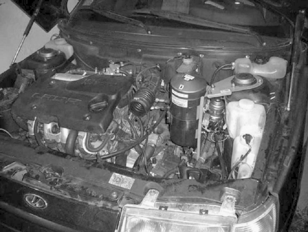 Автономный отопитель-подогреватель рекомендуется устанавливать в профессиональных сервисных центрах, поскольку его установка достаточно сложна, так как он соединяется с системами питания и охлаждения автомобиля и подключается к его бортовой электросети. Все эти операции требуют не только хорошего знания устройств автомобиля, но также и владения профессиональными навыками работы. Даже сам выбор места расположения отопителя в тесном пространстве моторного отсека порой представляет непростую задачу (рис. 2.7). Поэтому ниже приведены лишь общие положения по установке автономных отопителей, которые желательно знать автоспециалистам и лично водителю, озабоченному выбором подогрева для своего автомобиля.
