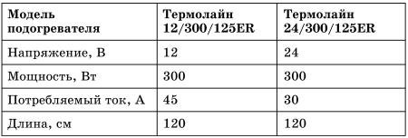 Таблица 6.5. Характеристики подогревателя топливопровода «Термолайн»