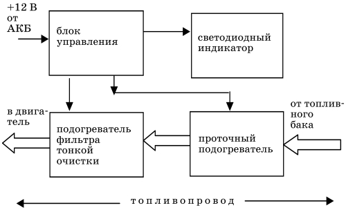 Рис. 6.12. Система подогрева топлива с проточным подогревателем.