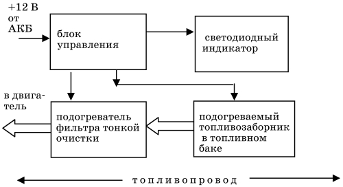 Предусмотрен выпуск топливозаборника, использующий только один вид подогрева от бортовой сети 12 В (рис. 6.8, в).