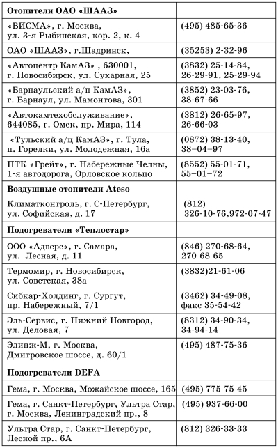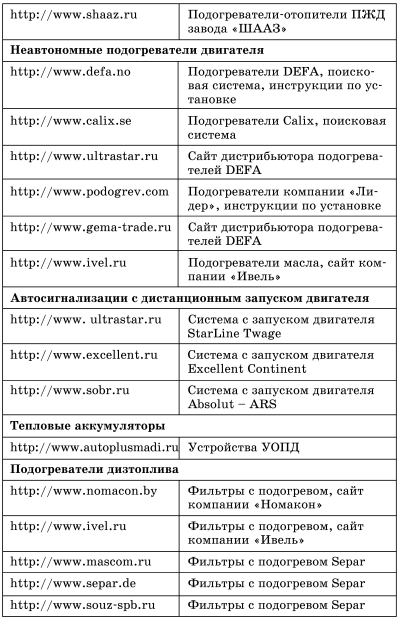 Интернет-ресурсы по устройствам подогрева двигателей и обогрева салона