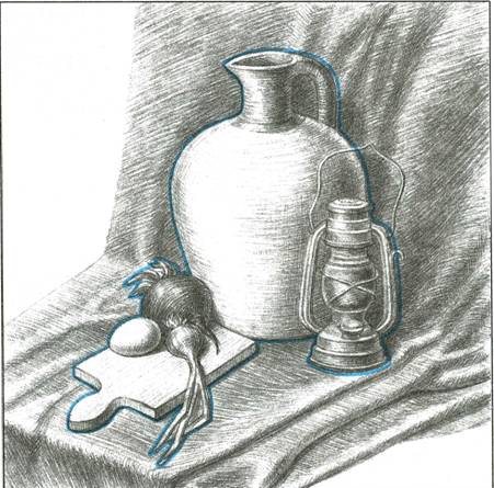 44. Выполните серию эскизов натюрмортов, как бы в определенном настроении, любыми живописными или графическими средствами. Это может быть натюрморт грустный, веселый, торжественный, задумчивый, важный, озорной и т. п.