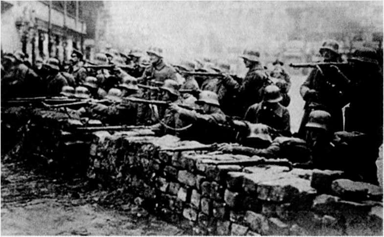 Ожесточенная уличная перестрелка в Берлине во время всеобщей забастовки. Январь 1919 г.