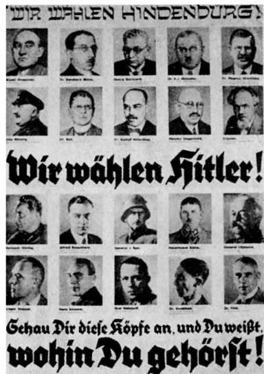 Следующая надпись: «Мы выбираем Гитлера!», под ней фотографии нацистских лидеров
