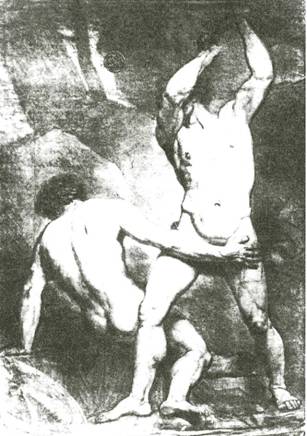 102. К. БРЮЛЛОВ. Группа из двух натурщиков. Итальянский карандаш. 1817 г.