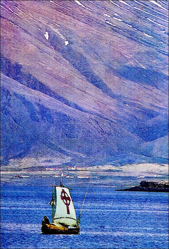 38 - "Брендан" финиширует в Новом Свете, остров Бекфорд, Ньюфаунленд.