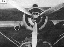 12. Вид на двигатель АШ-21 с откинутой для обслуживания правой створкой капота.