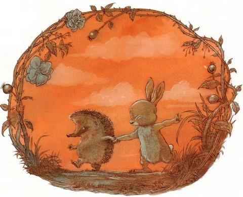 — Закрой глаза, — сказал Ёжик. Кролик закрыл глаза. Ёжик взял его за руку и повёл за собой.