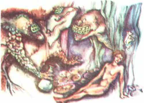 — За Магистралью. — Бак почему-то сглотнул слюну. — У Радужной Реки. Возле старого пакгауза. — У Радужной?! — взвился Дэйн. — Ты знаешь, сколько всего деревьев в Штатах? А ты знаешь, где они растут? Да ты знаешь, наконец, откуда течет Радужная Река?! Бак стоял, потупив голову. Найт поддел ногой банку из-под суррогатных консервов. — Вот что, — сказал он. — Надо это дело посмотреть. Это не значит, что я верю Баку, — добавил он, покосившись на Дэйна, — но глянуть надо. Давайте так. Завтра на рассвете. Здесь. Не забудьте все, что нужно. — Ну, об этом мог бы и не напоминать, — проворчал Дэйн. Солнце еще не встало, но прохлада уже исчезала. Со свалок, заброшенных заборов, автомобильных кладбищ поднимались ядовитые испарения. Мертвый Сантаун просыпался. К назначенному месту они подошли одновременно. У каждого на боку висела противогазная сумка и моток бечевы, на груди — фонарик. Солнце между тем поднялось и залило пустырь мягким, призрачным светом. Над городом качалась, переливалась приглушенными оттенками призрачная пелена. Ощутимее стал запах нефти и горелого бензина. День начался. Покурив и немного поболтав, они двинулись в путь. Через груды щебня, через свалки, минуя Большую Свалку, через ямы и пропасти с поднимающимся снизу смрадом. Найт думал. Прошли уже десятки лет с того времени, когда Сантаун начали покидать жители. Они бежали — на машинах, на вертолетах, пешком, далеко, за тысячи километров от города. Остались те, кто не хотел или не мог уйти. Сантаун давным-давно сжег, засыпал и отравил все живое на сотни миль вокруг. В самом городе все системы вышли из-под контроля. В один прекрасный день все вообще могло взлететь на воздух. И вот вчера Бак заявил, что у Радужной Реки видел настоящее дерево. Конечно, теоретически… — Противогазы! — скомандовал Дэйн, шедший впереди. Из распахнутых дверей обшитого металлом подвала с шипением выползало молочно-белое облако. Метров двести они брели, не видя друг друга. Потом путь преградила трехметровая бетонная стена, на которую пришлось забрасывать кошку. Потом — длинная гряда чего-то совершенно разложившегося… К 3-й Магистрали они добрались, вконец обессилев. Бак два раза проваливался, и его приходилось вытаскивать. Просто непонятно было, как смог Бак неделю назад добраться сюда и увидеть дерево, если он, конечно, в самом деле его увидел. — Закурим? — предложил Дэйн. — Курить вредно, — заметил Найт. Дэйн и Бак ухмыльнулись. Старая шутка: неизвестно, что вреднее — курить или дышать. Вот и Магистраль. Вон там мост. Возле моста пакгауз. А возле пакгауза… Дэйн и Найт на секунду замерли, затем, не сговариваясь, бросились вниз по насыпи. Бак бежал за ними. Дерево стояло во всей красе — невысокое и стройное. Откуда-то взявшийся ветерок слегка шевелил легкие, светло-зеленые, такие невозможные на фоне ржавых кубов и цистерн листки. Казалось, было слышно, как они шелестят там, на том берегу. А под ногами тяжело текла, медленно переливаясь в лучах неяркого солнца, Радужная Река. Это было так невероятно, что Найт закрыл глаза. — Здесь нигде даже трава не растет, — растерянно прошептал рядом Дэйн. «Весна, — думал Найт. — Сейчас вокруг весна». Он открыл глаза. Все трое стояли на берегу. Бак радостно улыбался. Потом он докурил сигарету и швырнул ее в реку. Дэйн и Найт успели броситься на землю прежде, чем окурок коснулся поверхнос
