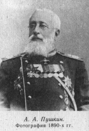 Ко второй половине 1890-х годов относится «парадная» фотография А. А. Пушкина, сделанная в мастерской Отто Ренара в Москве; на экземпляре из собрания А. Ф. Онегина, хранящемся во Всесоюзном музее А. С Пушкина, автограф: «А. Пушкин». На груди генерал-лейтенанта ордена Владимира III и IV степеней, орден Анны и анненская лента через плечо, медали и знаки отличия; на шее — орден Станислава I степени.