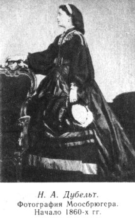 Петербургский фотограф Г. Штейнберг снял Н. А. Дубельт во весь рост, в открытом шелковом платье с белой отделкой. Она стоит у балюстрады в ателье фотографа, на правой опущенной руке ясно видно обручальное кольцо. На другой, слегка раскрашенной фотографии этого периода Наталья Александровна представлена сидящей на стуле с резной деревянной спинкой, на коленях у нее лежит раскрытая книга, на фоне стены четко вырисовывается красивый профиль молодой женщины. Очень эффектны фотографии в рост в визитных платьях с темной отделкой — в облике юной дамы видны красота, благородство, изящество. В одном из альбомов, поступивших в Пушкинский дом из наследия А. П. Араповой и хранящихся в настоящее время в собрании Всесоюзного музея А. С. Пушкина, есть портрет Натальи Александровны конца 1850-х — начала 1860-х годов. Как и на других портретах, она снималась в профиль. Положив руку на спинку вычурного кресла, стоит Наталья Александровна в мастерской фотографа П. Моосбрюгера. Спокойное лицо и стройная фигура напоминают о красоте античных статуй. Но одета она в замысловатое платье с многочисленными прошивками и вставками.