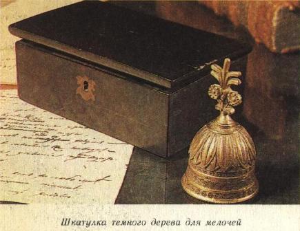 Лакированная шкатулка. Рядом с пером на письменном столе в квартире Пушкина на Мойке, 12, находится небольшая деревянная темная шкатулка, обтянутая внутри голубой шелковой материей. Шкатулка имеет маленький внутренний замок. После смерти Пушкина шкатулка принадлежала Аркадию Осиповичу Россету, старшему из братьев известной Александры Осиповны Россет-Смирновой, приятельницы поэта. Аркадий Россет в 1830-х годах был «домашним человеком» у Пушкина, — его многостороннее образование, ум и горячая преданность России нравились поэту. По свидетельству современников, Пушкин перед смертью «велел подать ему шкатулку, вынул из нее бирюзовое кольцо и, подавая его Константину Данзасу, сказал: от нашего общего друга». Это кольцо заказал П. В. Нащокин для Пушкина, оно должно было спасти поэта «от насильственной смерти». По свидетельству В. А. Нащокиной, это кольцо Данзас впоследствии обронил зимой на улице, снимая перчатку. Кольцо упало в сугроб, найти его не смогли. В 1870-х годах в Москве Аркадий Осипович Россет подарил черную шкатулку, некогда переданную ему В. А. Жуковским с согласия Натальи Николаевны Пушкиной, Франциску Адамовичу Корчак-Михневичу, жившему с ним в одном доме, большому другу семьи Россетов. Передавая эту дорогую для него вещь Михневичу, Аркадий Осипович вспомнил, что она стояла на письменном столе Пушкина, и просил всячески беречь ее. Впоследствии шкатулка Пушкина находилась у дочери Корчак-Михневича — Анастасии, а затем у его внучки — ленинградки Софьи Казимировны Островской. В 1969 году Всесоюзный музей А. С. Пушкина приобрел у нее шкатулку Пушкина вместе с гербовой аметистовой печаткой Россетов. Сейчас она стоит на письменном столе А. С. Пушкина в его квартире на Мойке, 12.