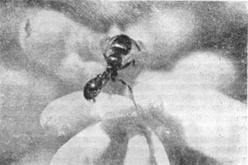 В лесу по земле всюду ползают крупные красноголовые муравьи с темным брюшком, на котором в том месте, где отходит стебелек, расположено золотистое пятно. Не спеша они пробираются по зарослям трав, заползают во всякие норки, щелочки и что-то ищут. Попробуйте схватить такого муравья — и он не побежит, как другие, полагаясь на быстроту своих ног, а тотчас попытается юркнуть в какое-нибудь укрытие. Эти муравьи никогда не ползают вместе, всегда одиноки, избегают встречи со всем живым, очень осторожны, осмотрительны и не одарены столь обычной в муравьином мире безудержной отвагой. Они прячутся на ночь в различные укрытия, с тем, чтобы с утра вновь начать беспрестанные поиски. Крупные муравьи-одиночки — самки красноголового лесного муравья. После брачного полета они навсегда сбросили свои большие нежные крылья. Что же ищут эти одинокие странницы? Проследим за ними. Путь самки пролегает мимо муравейника. Здесь много красноголовых разведчиков и один из них заметил странницу, ринулся к ней и, схватив за ногу, потащил в сторону жилища. К муравью подбегает второй, третий, каждый хватает за ногу, усик, и вот рыжегрудая самка растянута и отравлена кислотой. Еще несколько минут — голова и туловище отделены от груди, и провиант готов к транспортировке домой. Этот исход совершенно неожидан. Может быть, самка была какого-нибудь другого вида, от нее пахло враждебным, незнакомым, или она оказалась нездоровой? Подбросим к муравейнику еще таких самок. Все они встречаются как враги и неизменно уничтожаются. Но какая, казалось бы, нелепость! С одной стороны, заботливо воспитывать крылатых самцов и самок, с другой — убивать одиноких, ищущих покровительства представительниц своего вида! Но муравьи неспроста так поступают. У них в муравейнике, видимо, достаточно своих самок, а чтобы прокормить многочисленное потомство, едва хватает охотничьей территории: вокруг так много муравейников! Неспроста члены такого муравейника настроены враждебно к бродячим самкам и безжалостно с ними расправляются. Какой же выход для несчастных бродяжек? Видимо, те, которые попадают на участки леса, перенаселенные красноголовым муравьем, обречены на гибель. Но немало удачниц попадает на места еще свободные, и каждый вид в силу невольно складывающихся обстоятельств заполняет все участки, где только возможна для него жизнь. Часто юркой, осторожной самке удается убежать от преследователей. Свирепые нападения делают ее еще более осмотрительной и боязливой. Но не все муравьи враждебны к самкам-бродяжкам. Вот небольшой холмик из еловых иголочек, прислоненный к большому пню, когда-то тронутому лесным пожаром. Рабочие выпустили на его поверхность своих крылатых воспитанников, потом, гоняясь за теми, кто пытался расползтись в стороны, согнали всех в одну кучу. Кое-кому из ретивых самцов удалось прорваться сквозь преграды и, взмахнув крыльями, отправиться в брачный полет. Но большинство... большинство оказалось на солнце в одном барахтающемся клубке, и некоторым уже отгрызли крылья, загнали их обратно в муравейник. Здесь, в молодом растущем муравейнике, не хватало самок, и население его, заботливые рабочие, устроили что-то вроде брачного скопища без полета у себя на гнезде. Им нелегко было рассчитывать на поимку самок-бродяжек: муравейники в этом ущелье были редки. А что, если набрать