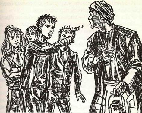 — Прекратите бить ребенка! — возмущенно крикнул он. — Что он вам сделал?И снова мужчина завопил что-то непонятное. Его единственный здоровый глаз злобно сверкал. Мальчик поднял голову и всхлипнул.— Он говорит, что я украл у него деньги. Но это неправда.Он развязал набедренную повязку и потряс ее над землей, чтобы продемонстрировать, что она пуста. Потом показал пальцем на заклинателя змей.— Я ему все отдал, все! А он бьет меня. А-а, а-а! — Мальчик закрыл лицо руками и жалобно заплакал.Заклинатель змей попытался достать его кулаком, но Филипп угрожающе поднял палку.— Не трогайте мальчика! Если вы не оставите его в покое, я сдам вас в полицию.Филипп понятия не имел, была ли поблизости полиция, но решительно не мог допустить, чтобы негодяй продолжал бить ребенка. Заклинатель злобно уставился на него, потом бросился к корзине со змеями и ногой сбросил с нее крышку. Из отверстия тотчас высунулись страшные змеиные морды.— Бегите, бегите! — завопил заклинатель по-английски. — Иначе я напущу на вас своих змей.Дина панически дернулась и отбежала в сторону, но остальные не двинулись с места. Ведь Филипп сказал, что у змей зашиты морды, а стало быть, и бояться нечего. Две змеи скользнули по земле, стремительно приближаясь к ребятам. И тут Филипп поразил всех. Он отбросил Джеку палку, которую держал в руке, быстро опустился на землю и тихо зашипел, как всегда делал, приручая дома безобидных, неядовитых змей.Змеи остановились и прислушались. Потом подползли к Филиппу и стали тереться головами о его руки, как кошки. А одна даже взобралась по руке наверх и обвилась вокруг его шеи.Заклинатель потерял дар речи от изумления. С ним самим змеи никогда не обходились так ласково. Они старались не попадаться на его пути; они ненавидели его. Никогда еще ему не приходилось видеть, чтобы ядовитые змеи вели себя по отношению к человеку столь дружелюбно. Да и странный мальчик, сотворивший это чудо, не испытывал, похоже, ни малейшего страха перед ужасными созданиями.— Кусать, кусать! — завопил он и принялся топать ногами, чтобы напугать и разозлить несчастных, искалеченных змей.— Они не могут никого укусить, — презрительно бросил Филипп и нежно погладил змеиные головы. — Вы, зверюга проклятый, зашили им пасти. В моей стране вас посадили бы за это в тюрьму.Заклинатель на секунду задумался, как ему поступить, потом что-то громко крикнул на своем языке. Мальчик испуганно повернулся к ребятам:— Быстро убегайте! Он зовет на помощь друзей. Убегайте быстрее!Филипп тотчас опустил змей на землю. Если сюда сбегутся приятели этого типа, ситуация может выйти из-под контроля, а ему никак нельзя рисковать безопасностью девочек.— Давайте-ка сматываться отсюда, — крикнул он Джеку. Но было уже слишком поздно.На крики заклинателя прибежали трое молодых парней, подтолкнули Дину к остальным и окружили ребят со всех сторон.— Немедленно выпустите нас отсюда! — смело крикнул Филипп. — Иначе мы вызовем полицию.Однако это не произвело на парней ни малейшего впечатления. У ребят упало сердце; с тремя здоровенными парнями и заклинателем им ни за что не справиться. Что делать? Положение становилось отчаянным. Однако Кики было не так-то легко запугать. Он гневно тряхнул перьями и завопил во всю глотку:— Полиция, полиция! — И оглушительно засвистел, как не смог бы засвистеть целый отряд отборны