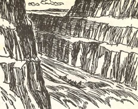 С площадки, на которой стояли ребята, не было видно, где кончается водопад. По каменному ущелью, наполненному брызгами и неистовым грохотом воды, стремительно носились блики света, переливаясь всеми цветами радуги. Это было завораживающее зрелище. Все стояли, не в силах произнести ни слова, смотрели и не могли насмотреться досыта.За водопадом ущелье тянулось дальше, поднимаясь все выше вверх, но уже без воды. Здесь, в этом месте, буйный поток низвергался в огромную, бездонную дыру и навсегда исчезал в самом сердце земли. Здесь заканчивался земной путь рукава реки, протекающего по Тео Гра, глубокому ущелью.Захваченные величественным действом, ребята стояли и, забыв о времени, как зачарованные смотрели на небывалый спектакль, устроенный самой природой. Наконец заволновался Тала. Он брюзгливо поинтересовался, сколько еще времени ребята намерены стоять, уставившись себе под ноги. Ему хотелось есть; водой сыт не будешь. Он осторожно потянул Джека за рукав.Когда Джек обернулся, он завопил ему прямо в ухо:— Возвращаемся, да?Джек кивнул. Как ни тяжело ему было оторваться от захватывающего зрелища, но делать было нечего — надо было идти назад. Он толкнул Филиппа. Филипп передал сигнал девочкам и Ооле, и все двинулись в обратный путь.Вернувшись на лодку, они некоторое время сидели кружком, не говоря ни слова. Молчание прервала Люси, выразив в немногих словах чувства остальных ребят:— У меня такое ощущение, как будто я побывала в церкви. Все это было так торжественно и празднично.А вот Кики вовсе не довелось увидеть водопад. Напуганный сыростью и грохотом падающей воды, он спрятался у Джека под курткой и не высовывался оттуда все это время. Теперь он с видимым облегчением вылез наружу и заинтересованно следил за Диной, открывавшей банку консервированных ананасов.За завтраком было шумно и весело. Оола, примостившийся на борту лодки, так хохотал над проделками Кики, что не удержал равновесия и перелетел через борт, упав, к счастью, не в воду, а на каменную площадку.Наевшись, они приготовили в дорогу несколько пакетов с бутербродами. Кроме того, Тала и Оола повесили себе на шею по две банки с соком.— Ну что, двинулись? — вопросил Джек. — У всех есть фонари? Никто не забыл взять еду? Обещаете не разбегаться и держаться вместе?— Да! — хором ответили члены экспедиции, включая Кики.— Ты захватил веревку, Тала?— Да, я взял веревку — и крюки, и еще маленькую лопатку.Все инструменты, включая длинную веревку, Тала закрепил на поясе. Вообще-то он все время порывался захватить с собой еще и большую лопату, но был вынужден признать, что она слишком тяжела и неудобна.— Ты и так нагружен как верблюд, — сказал Филипп, весело разглядывая его.— Оола тоже тащит как верблюд! -ревниво крикнул Оола.— Оола тащит как целых два верблюда, — заверил его Филипп, и мальчик тут же расцвел от радости.— С лодкой мы, видимо, расстаемся навеки. — Филипп еще раз окинул окрестности прощальным взором, потом наклонился, поднял одну из книг Умы и выдрал из нее пару страниц.— Это еще зачем? — удивленно воскликнула Дина. Филипп сунул листки в карман.— Эти страницы отметил сам Ума. Кто знает — вдруг эти сведения окажутся полезными.Они двинулись по каменной дорожке вокруг пещеры, добрались по туннелю до отверстия с участком кирпичной стены, разрушенным Талой, и, проползя через него, снова ок