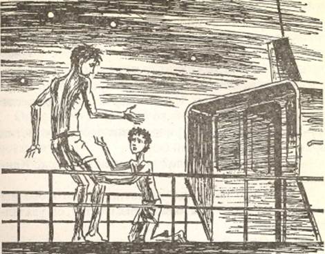 Может быть, к ним забрался кто-то из местных? Филипп задумался, решая, как поступить. Разбудить Талу? Нет, слишком долго. Да и, кроме того, он поднимет такой шум, что незваный гость успеет смыться незамеченным. Закрыть дверь, ведущую в каюту, и запереть в ней вора? Но дверь специально заклинили, чтобы не хлопала, и в одиночку ему ее не сдвинуть. Придется звать Джека. Вдвоем они как-нибудь одолеют взломщика.Филипп тихо скользнул обратно. И тут ему показалось, что за ним кто-то идет. Он замер, прислушиваясь. Нет, вроде никого! Он двинулся дальше. Неожиданно к нему бросилась какая-то темная фигура, и в следующее мгновение кто-то обхватил руками его колени.— Господин! — послышался умоляющий голос. — Господин, Оола шел за тобой. Оола пришел к тебе.Все тотчас проснулись, только Тала продолжал храпеть как ни в чем не бывало. Джек подскочил спросонья и угодил головой прямехонько в противомоскитную сетку. Девочки в испуге прижимались друг к другу. Миссис Каннингем сдвинула свою противомоскитную сетку и, подняв фонарь, посветила в направлении, откуда доносились голоса. Взору присутствующих предстала странная картина. Маленький Оола стоял на коленях перед Филиппом так отчаянно вцепившись в его ноги, что тот не мог двинуться с места.— Отпусти меня! — возмущенно крикнул он. -Ты тут всех перебудишь. Какого черта тебя принесло сюда?— Господин, Оола принадлежит тебе, — ответил мальчик. — Не прогоняй Оолу.— Филипп, в чем дело? — спросила миссис Каннингем.— Мам, это тот самый мальчишка, которого мы спасли от заклинателя змей. Оказывается, он увязался за нами.— Да, Оола бежал за лодкой, все время, все время, — горячо подтвердил мальчик.— Целый день бежать по берегу реки! — ошарашено воскликнул Джек. — Бедный Оола! Филипп, похоже, он считает себя кем-то вроде твоего раба. Есть хочешь, Оола?— Оола поел там. — Мальчик показал на каюту. — Оола три дня никакой еды.Присмотревшись к мальчику получше, миссис Каннингем в ужасе вскрикнула:— У него все тело покрыто синяками и кровоподтеками, а тощий он, как скелет. Бедный малыш! Неужели он в самом деле бежал за катером от самого киногорода?— Похоже на то. — Сердце Филиппа переполняло сострадание. Он живо представил себе, как маленький, тщедушный мальчишка, преодолевая голод, жажду, боль в стертых ногах, продираясь сквозь кусты, упорно следовал за их катером. И все это только из-за того, что Филипп спас его от побоев злобного родственника! Наверное, до этого случая никто еще и никогда не относился к Ооле по-дружески и с сочувствием.Вдруг с берега послышался голос Билла:— Эй, на борту! Вы почему не спите? Надеюсь, не меня ждали?Он быстро взобрался на катер. Увидев Оолу, стоящего перед Филиппом на коленях, он в изумлении остановился.— Это еще что такое? Ночной гость?НЕОБЫЧНЫЙ ПОДАРОК