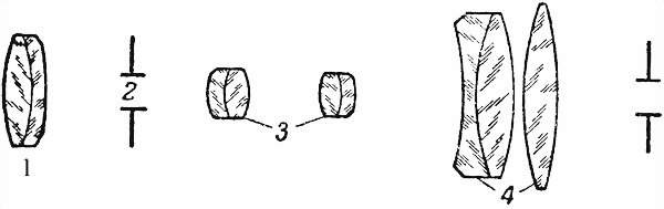 Рис. 38. Предохранитель: 1 — стержень; 2 — флажок; 3 — выступ головки; 4 — вырез для головки упора