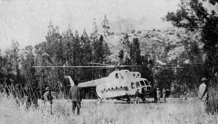 Вертолет с прибывшими в Перу советскими медиками для оказания помощи перуанскому населению, пострадавшему во время землетрясения 1970 г.