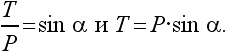Как уже говорилось, если тело давит на опору, то опора противодействует давлению или, как говорят, создает силу реакции. Нас интересует, в какой степени тащить тележку вверх легче по наклонной плоскости, чем поднимать вертикально. Разложим силы так, чтобы одна была направлена вдоль, а другая – перпендикулярно к поверхности, по которой движется тело. Для того чтобы тело покоилось на наклонной плоскости, сила натяжения веревки должна уравновешивать лишь продольную составляющую. Что же касается второй составляющей, то она уравновешивается реакцией опоры. Найти интересующую нас силу натяжения каната T можно или геометрическим построением или при помощи тригонометрии. Геометрическое построение состоит в проведении из конца вектора веса P перпендикуляра к плоскости. На рисунке можно отыскать два подобных треугольника. Отношение длины наклонной плоскости l к высоте h равно отношению соответствующих сторон в треугольнике сил. Итак,