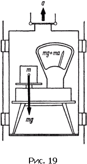 В предыдущей главе мы отыскали «разумную точку зрения» на движение. Правда, «разумных» точек зрения, которые мы назвали инерциальными системами, оказалось бесконечное множество. Теперь, вооруженные знанием законов движения, мы можем поинтересоваться, как выглядит движение с «неразумных» точек зрения. Интерес к тому, как живется жителям неинерциальных систем, вовсе не праздный, хотя бы уже потому, что мы сами являемся обитателями такой системы. Представим себе, что мы, захватив измерительные приборы, погрузились на межпланетный корабль и отправились путешествовать в мир звезд. Быстро бежит время. Солнце уже стало похоже на маленькую звездочку. Двигатель выключен, корабль далеко от притягивающих тел. Посмотрим теперь, что делается в нашей летающей лаборатории. Почему висит в воздухе и не падает на пол сорвавшийся с гвоздика термометр? В каком странном положении застыл отклонившийся от «вертикали» маятник, висящий на стене. Мы тут же находим разгадку: ведь корабль не на Земле, а в межпланетном пространстве. Предметы потеряли вес. Полюбовавшись на необычную картину, мы решаем изменить курс. Нажатием кнопки включаем реактивный двигатель, и вдруг… предметы, окружающие нас, словно ожили. Все тела, которые не были наглухо закреплены, пришли в движение. Термометр упал, маятник начал качаться и, постепенно успокаиваясь, пришел в вертикальное положение, подушка послушно прогнулась под лежащим на ней чемоданом. Посмотрим на приборы, которые указывают, в какую сторону наш корабль начал ускоренное движение. Конечно, оно направлено вверх. Приборы показывают, что мы выбрали движение с небольшим для возможностей корабля ускорением 9,8 м/с2. Наши ощущения вполне обычны, мы чувствуем себя, как на Земле. Но почему так? По-прежнему невообразимо далеко находится корабль от притягивающих масс, нет сил притяжения, а предметы приобрели вес. Выпустим из рук шарик и измерим, с каким ускорением он падает на пол корабля. Оказывается, ускорение равно 9,8 м/с2. Эту цифру мы только что прочли на приборах, измеряющих ускорение ракеты. Корабль движется с таким же ускорением вверх, с каким тела в нашей летучей лаборатории падают вниз. Но что такое «верх» и «низ» в летящем корабле? Как просто дело обстояло, когда мы жили на Земле. Там небо было верхом, Земля была низом. А здесь? У нашего верха есть неоспоримый признак – это направление ускорения ракеты. Смысл наших наблюдений понять нетрудно: на шарик, выпущенный из рук, никакие силы не действуют. Шарик движется по инерции. Это ракета движется с ускорением по отношению к шарику, и нам, находящимся в ракете, кажется, что шарик «падает» в сторону, обратную направлению ускорения ракеты. Разумеется, ускорение этого «падения» равно по величине истинному ускорению ракеты. Ясно также, что все тела в ракете будут «падать» с одинаковым ускорением. Из всего сказанного мы можем сделать интересный вывод. В ускоренно движущейся ракете тела начинают «весить». При этом «сила притяжения» направлена в сторону, противоположную направлению ускорения ракеты, а ускорение свободного «падения» равно по величине ускорению движения реактивного корабля. И самое замечательное то, что практически мы не можем отличить ускоренное движение системы от соответствующей силы тяжести*7. Находясь в космическом корабле с закрытыми окнами, мы не мог