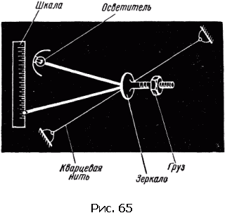 Кроме таких сейсмографов, записывающих вертикальные смещения почвы, употребляются и горизонтальные сейсмографы. Принцип действия горизонтального сейсмографа показан на рис. 127. Главной частью прибора является почти вертикальный стержень. Эксцентричный груз превращает этот стержень в маятник, способный поворачиваться около оси стержня. Если почва спокойна, то груз маятника покоится в самом низком положении. Толчок в горизонтальном направлении вызывает смещение оси маятника, между тем как тяжелый груз по инерции вначале остается на месте. Поворот маятника регистрируется самопишущим устройством. Если установить один вертикальный и два горизонтальных сейсмографа, колеблющихся во взаимно перпендикулярных плоскостях, то можно записать величину и направление любого смещения.