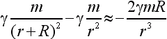 Теперь займемся вращающимися системами. Движение такой системы определяется числом оборотов в секунду, которое совершает эта система, поворачиваясь вокруг оси. Надо, конечно, знать и направление оси вращения. Чтобы лучше понять особенности жизни во вращающихся системах, рассмотрим «колесо смеха» – известный аттракцион. Устройство его очень несложно. Гладкий диск диаметром в несколько метров быстро вращается. Желающим предлагается сесть на него и попробовать удержаться. Даже люди, не знающие физики, быстро постигают секрет успеха: надо устроиться в центре диска, так как чем дальше от центра, тем труднее удержаться. Такой диск представляет собой неинерциальную систему с некоторыми особыми свойствами. Каждый предмет, скрепленный с диском, движется по окружности радиуса R со скоростью v, т.е. с ускорением v2/R. Как мы уже знаем, с точки зрения неинерциального наблюдателя это означает наличие дополнительной тяжести mv2/R, направленной по радиусу от центра. В любой точке «чертова колеса» будет действовать эта радиальная сила тяжести, в любой точке она будет создавать радиальное ускорение v2/R. Для точек, лежащих на одной окружности, величина этого ускорения будет одинаковой. А на разных окружностях? Не торопитесь сказать, что ускорение, согласно формуле v2/R, будет тем больше, чем меньше расстояние от центра. Это неверно; ведь скорость более удаленных от центра точек колеса будет больше. Действительно, если обозначить буквой n число оборотов, совершаемых колесом в секунду, то путь, проходимый точкой колеса, находящейся на расстоянии R от центра, за одну секунду, т.е. скорость этой точки, можно выразить так: 2πRn. Скорость точки прямо пропорциональна ее расстоянию от центра. Теперь формулу ускорения можно переписать: a = 4π2n2R. А так как число оборотов, совершаемых в секунду, одинаково для всех точек колеса, то мы приходим к результату: ускорение силы «радиальной тяжести», действующей на вращающемся колесе, возрастает пропорционально расстоянию точки от центра колеса. В этой интересной неинерциальной системе сила тяжести на разных окружностях разная. Значит, и направления «вертикалей» для тел, находящихся на разных расстояниях от центра, будут разные. Сила притяжения Землей, разумеется, одна и та же во всех точках колеса. А вектор, характеризующий дополнительную радиальную тяжесть, становится длиннее по мере удаления от центра. Значит, диагонали прямоугольников отклоняются все больше и больше от земной вертикали.