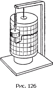 Земля хорошо передает звук. Почти в каждом романе из времен средневековья вы найдете сцену погони за скачущим на коне героем. «Всадник вдруг остановил коня, спешился и приложил ухо к земле: “За нами погоня, нужно спешить!”». Действительно, удары копыт лошади о землю передаются на расстояние более километра. Земля, как и всякое упругое тело, служит проводником звуковых волн. Звуковые волны, распространяющиеся через землю, приносят нам сведения о землетрясениях и знакомят с процессами, происходящими в земной толще. Звуковые волны, возникающие при землетрясении, называются сейсмическими. Наличие сейсмической волны, ее амплитуда, скорость, длина, частота колебания – все это может быть определено специальными очень чуткими приборами – сейсмографами. Сейсмографы – сложные приборы. Но принцип их действия понять легко. Основная часть сейсмографа – это тяжелый груз, подвешенный на пружине. При вертикальном смещении почвы точка подвеса пружины с грузом сместится так, как показано на рис. 126. Вследствие большой инерции груз вначале остается на месте. К грузу прикреплено перо, а с подставкой жестко скреплена бумага. Когда подставка сместится, перо прочертит на бумаге вертикальную линию. Чтобы записать сейсмическую волну, надо протягивать бумагу.