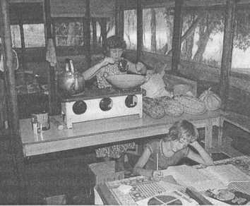 К предметам повышенной комфортности относились две раковины, одна в ванной, другая на кухне. Туда по металлическим стокам стекала дождевая вода, которую мы использовали для приготовления пищи и питья. В период засухи дождей не было, и тогда нам приходилось приносить воду из реки и кипятить ее. В кухне стояла маленькая керосинка с двумя конфорками, на которых мы готовили. На противоположной стене отец прикрепил две доски, которые стали полками для сковородок, горшков, тарелок, чашек и другой кухонной утвари. Сзади к жилому помещению примыкала маленькая комнатка со столиком и полками — в ней мы хранили продукты. На столике стоял коротковолновый приемник, и каждое утро ровно в восемь часов мы выходили на связь с базой, находящейся в Данау Бира. Поскольку у нас не было электроэнергии, только одна батарея, а в Данау Бира электричество тоже было лишь в ограниченное время, мы, как и все те, кто находился в джунглях, договорились ежедневно выходить на связь именно в это время. Если в течение трех дней база или станция не отвечали, высылался вертолет, чтобы выяснить, что произошло. Спальня была разделена длинной занавеской на две половины; одна — для меня и моей сестры, другая — для родителей, с которыми спал мой брат. Кровати из длинных досок были накрыты тонкими матрасами. Над кроватями укрепили москитные сетки, которые мы по ночам заправляли под матрас, чтобы хоть как-нибудь защититься от москитов и других насекомых. Для меня и Юдит отец соорудил кровать прямо под окном. Вероятно, он думал, что так нам будет прохладнее — в окнах нашего дома не было стекол. Было действительно прохладно — особенно когда шел дождь. Если в тропиках идет дождь, он льет как из ведра, и по ночам мы часто просыпались насквозь промокшие. Тогда мы вставали, брали свои мокрые вещи и направлялись на половину родителей, которые, проснувшись, с удивлением обнаруживали в своей кровати уже не одного, а трех детей. Ванна представляла собой всего лишь маленькую раковину из цемента, в которой мы мыли ноги перед тем, как лечь спать. У нас также был туалет, но без смыва — из-за недостаточного напора воды. Вместо этого отец держал ведро речной воды, которое он ставил возле туалета. Когда мы осматривали наш новый дом, Кристиан обнаружил нечто совершенно не домашнее: огромного черного паука! Он был огромным, как морская звезда. Пораженные, мы замерли как вкопанные. Отец крикнул, чтобы мы не двигались, и побежал за парангом (длинный нож в джунглях). Он подскочил с ним к пауку. — Нет, папа! — закричала я в ужасе. — Я хочу сохранить его. Но было уже слишком поздно: одним ударом он расплющил паука по стене. — Вот это да, посмотрите-ка — ноги еще шевелятся, — вскрикнул Кристиан. Все с отвращением уставились на огромное пятно на стене, а я плакала, что потеряла такой ценный экземпляр для коллекции. Мама, не долго думая, повела нас смотреть на отлет вертолета. А папа остался в доме оттирать испачканную стену. В этом полном приключений мире, куда нас забросила судьба, впереди было столько интересного и неизведанного, что история с пауком быстро забылась. С поляны назад, в Данау Бира, улетал вертолет. Я стояла там, пока шум мотора окончательно не стих. Потом я огляделась по сторонам, увидела широкую прохладную реку, неторопливо несущую свои воды мимо меня, отдельно стоящие хижины фаю, темные непроходи