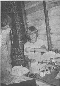 — Нет, — возразила я, — потрогай своей рукой. Он опустил руку в воду, и на его лице отразилось удивление, когда он почувствовал тепло. После долгих уговоров отец все же согласился, чтобы его ребенка искупали. Мать же с самого начала не возражала. Фаю обступили меня и с интересом наблюдали за процессом. Я положила больного ребенка в воду; девочка сразу успокоилась. Было видно, что она наслаждалась теплом. За моей спиной раздавались вздохи «ух», «ах», — публика была в восторге. Искупав ребенка, я завернула его в чистое полотенце и вернула матери. Спросила, есть ли у девочки имя. — Нет, — ответили родители, — у нее же еще не прорезались зубы... На следующее утро мать пришла к нам в дом, чтобы поблагодарить меня: у девочки спала температура, и она стала есть. Я весь день парила в небесах от счастья и заснула в прекрасном настроении А утром проснулась от плача и скорбных песен. Я сразу догадалась, что случилось: ночью ребенок умер. Я сидела в постели и плакала. Почему я больше ничего не сделала? Я чувствовала себя беспомощной. Раньше, когда я была младше, то воспринимала смерть, с которой сталкивалась намного чаще, чем любой ребенок на Западе, как нечто естественное. Почему же теперь так тяжело? Теперь-то я понимаю: уже тогда я мыслила по-западному. Я злилась на то, что не в моих силах оказалось изменить судьбу. Я вышла на улицу. Мать девочки держала мертвого ребенка на руках, качала его и пеласкорбную песнь. Весь день и всю ночь продолжалось оплакивание. Я заснула и проснулась под звуки печальных песен. Траур длился трое суток. На третий день родители ребенка отправились в джунгли. Мы с Ори пошли за ними. Пришли на поляну, где отец умершей девочки уже построил хижину для погребения. Некоторое время назад фаю перестали оставлять тела гнить в собственных хижинах. Они стали понимать, что бактерии и насекомые, размножавшиеся в гниющем теле, очень опасны для новорожденных, да и взрослых людей. Теперь они строили погребальные хижины в джунглях. В землю вкапывались четыре столба, на них закреплялась платформа, на которую клали тело. Рядом с платформой в землю были воткнуты еще две длинные жерди. Ори пояснил, что они помогают духам найти мертвое тело. Я смотрела, как мать укладывает тело на платформу. Рядом она положила единственное, что принадлежало ребенку, — полотенце, в которое я его завернула. Слезы катились по моим щекам. Мне было очень плохо. Ори взял меня за руку и сказал: «Не грусти, маленькая сестра, я не оставлю тебя». Я сжала его руку. Отец очень удивился, что по ребенку скорбели так недолго. Фаю объяснили, что этого ребенка еще никто не знал: «Мы не ходили с ним на охоту, не делили пищу и не разговаривали. У этого младенца даже зубов еще не было». Продолжительность траура у фаю зависит от возраста умершего. Чем старше покойный, тем дольше скорбят. Когда умирает старик или вождь, плач порой продолжается неделями. Кости, оставшиеся после разложения тела, вешаются в хижинах. И их забирают с собой каждый раз, переезжая на новое место. Зачастую в хижине, куда я заходила в гости, мне гордо показывали черепа: «Это мой дядя, это дедушка, а вот это моя сестра...» То, что на Западе расценили бы как кощунство, у фаю было доброй традицией отдавать дань уважения своим родным.