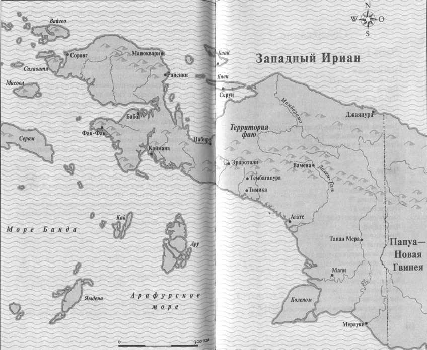 Страна, о которой идет речь, имеет долгую и неспокойную историю. Ранее известная как Западный Ириан, Ириан Барат, Западная Новая Гвинея и Ириан-Джая, Западная Папуа, как ее сегодня называют, расположена в западной части острова Новая Гвинея, второго по величине острова в мире после Гренландии. На востоке Западная Папуа граничит с государством Папуа — Новая Гвинея (независимым государством с 1975 года), на юге проходит морская граница с Австралией. Ириан-Джая, или Западная Папуа, является восточной провинцией Индонезии площадью 400 тыс. кв. км. Нет ничего удивительного в том, чтобы рассматривать Западную Папуа как отдельный мир, — где одно чудо природы сменяется другим. Хребет острова составляют самые высокие горы к востоку от Гималаев и к западу от Анд, с выдающимися вершинами Пункак Джая (5029 м), Гунунг Джаякусема, или пирамида Карстенц, (глетчер, 5022 м) и огромными горными цепями Виснумурти и Судирман.