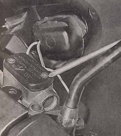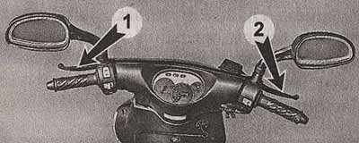 1 — рычаг заднего тормоза; 2 — рычаг переднего тормоза