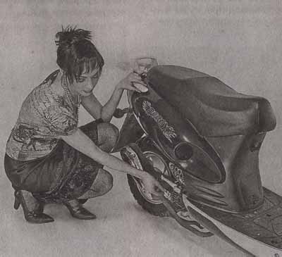 Давать какие-то рекомендации по внешнему тюнингу примерно то же самое, что советовать, как держать ложку и сколько соли сыпать в суп, это — дело вкуса каждого конкретного человека. Внешний тюнинг скутера ограничивается даже не столько финансовыми возможностями человека, сколько его фантазией. На руку и тот факт, что внесение изменений в конструкцию и внешний вид аппарата не повлечет за собой проблем с ГИБДД, так что можно перекрашивать свой скутер хоть каждый день, под настроение. Наиболее простой, хотя и не дешевый способ придать своему «коню» индивидуальность — заказать тюнинговый обвес по каталогу и просто заменить им стоковые (Сток — (от англ. stock) рынок, продажа. Стоковыми называют любые детали или скутера целиком, в которые не было внесено никаких изменений после выхода с завода) детали. У этого пути есть как свои недостатки, так и достоинства; к первым можно отнести, например то, что никто не застрахован от того, что через неделю у соседа появится точно такой же гоночный пластик или, допустим, такое же ветровое стекло. Каталожные или (афтермаркетовые(Афтермаркет (от англ. after market) после рынка. То есть «после продажи» (имеется в виду после продажи скутера, мотоцикла, автомобиля). Так называют детали и элементы, выпускаемые мелкосерийно и продаваемые чаще всего через каталоги)) детали выпускаются хоть и мелкими, но все же сериями, и вероятность встретить «даму в таком же платье» достаточно велика. Стоит заметить, что индустрия каталожного тюнинга в основном широко распространена на западе, то есть для европейских скутеров (или для японских, официально поставляемых на европейский рынок) выбор большой, а вот на древние японские «полтинники» найти практически ничего не получится. Другой путь — творчество и приложение собственных рук и рук друзей и прочих хороших людей. Граффити на бортах? Извольте! Аэрография? Пожалуйста! Только платите, и вам нарисуют что угодно, от бабочек и джунглей до Драку-лы или боевой раскраски самолетов авиаполка «Нормандия-Неман». Хотите сделать «Плюшевого Мишку» — можно обклеить скут искусственным мехом. Можно пустить под днищем разноцветную подсветку, или взять много фломастеров и попросить всех друзей расписаться на пластике и оставить свои пожелания хозяину — словом, все, на что способна ваша фантазия и ваши руки — к вашим услугам. Главное — смелость мысли и здравый смысл, ведь понятно, что, например, ветровое стекло площадью полтора квадратных метра сведет на нет все усилия по повышению мощности двигателя, ведь законы аэродинамики для скутеров никто не отменял.ЭКСТРЕМАЛЬНЫЙ ТЮНИНГ