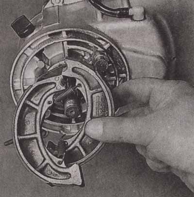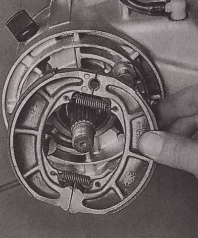 В скутерах сегодня применяются дисковые и барабанные тормозные механизмы. Дисковые тормоза «пришли» из мотоспорта и отличаются значительно большей эффективностью и быстротой срабатывания, нежели барабанные. Как правило, их устанавливают на переднее колесо, так как при торможении загружается именно перед скутера, соответственно и тормозное усилие приходится в основном на переднее колесо. Соотношение тормозного усилия на колеса как правило составляет до 70 % на переднее и до 30 % на заднее колесо. Барабанные тормоза более склонны к перегреву при интенсивном торможении. Единственный их плюс перед дисковыми системами — высокая грязеустойчивость, ведь барабан и тормозные колодки полностью закрыты со всех сторон, в отличие от открытого «всем ветрам» тормозного диска. Тормозной барабан обычно выполняется внутри ступицы колеса, где установлен опорный диск с двумя колодками. Наружная поверхность колодок покрыта специальным фрикционным материалом, который контактирует с внутренней рабочей поверхностью барабана, обеспечивая торможение. Каждая колодка упирается одной стороной на специальный цилиндрический упор, а второй — на кулачок, находящийся на тросе привода тормоза. При нажатии на рычаг тормоза кулачок поворачивается, распирая колодки. Обратный ход колодок обеспечивается одной или двумя возвратными пружинами. Также существует вариант тормозного механизма с двумя распорными кулачками, каждый из которых воздействует на свою колодку — этот вариант тормозного механизма гораздо эффективнее однокулачкового.