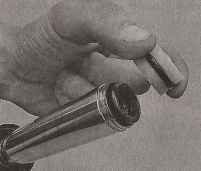 11. Приступаем к обратной сборке узла. Перед тем, как вставить подвижную деталь в рабочее отверстие сальника, необходимо смазать его рабочую кромку небольшим количеством масла. Подвижную деталь также желательно смазать.