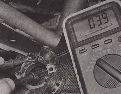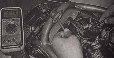 • Беремся за колесо в позиции «без пятнадцати три» и пытаемся покачать его в направлении перпендикулярном оси колеса. Если ощущается люфт или слышны стуки или хруст, подшипники подлежат замене. Процедуру замены колесных подшипников см. с. 102 «Подшипники переднего колеса — замена»