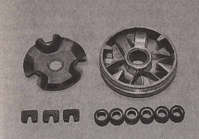 Теперь, когда мы увеличили объем двигателя, подготовили для него соответствующую систему питания и выпуска, осталось разобраться с системой зажигания. Часто на скутеры, особенно недорогих моделей, устанавливают систему зажигания с фиксированным углом опережения зажигания (УОЗ), мало того, производитель устанавливает УОЗ, при котором максимально снижается расход топлива, и понижается токсичность выхлопа, разумеется, в ущерб мощности. Может быть экологам и экономным домохозяйкам это и во благо, но в тюнинге есть только одна цель — максимальная мощность. Выбор тюнинговых электронных блоков управления (ЭБУ) или попросту «мозгов», достаточно велик, и именно этот узел будет во многом определять характер двигателя. Модели ЭБУ подешевле, как правило, имеют настройку под определенные режимы работы двигателя, причем, чаще всего, для повышения пиковых значений мощности, «мозги» настраивают именно на высокие обороты. С одной стороны, это, конечно, хорошо. Пиковые значения мощности «подрастают», правда, практически во всех случаях, если поднимаются «верха», то «низы» и «середина» тухнут. То есть скутер будет хорошо ехать и разгоняться только по достижению мотором высоких оборотов, а пока мотор не раскрутился, динамика будет откровенно вялой. Такая характеристика кривой мощности хороша на гоночном треке, но никак не в городе, так что, прежде чем купить такой «мозг», стоит подумать, ведь в городе часто приходится работать в режимах «низов» и «середины», с постоянными светофорами, пробками и прочими трудностями. Разумеется, можно найти и «мозги» с прошивками зажигания, настроенными на низкие и средние обороты. Модели ЭБУ подороже предлагают не только прошивки с изменяемым УОЗ, но позволяют изменять и записанные в себе программы. Для этого чаще всего нужен компьютер, специальный интерфейсный кабель и программное обеспечение. Удобства такой системы очевидны — можно экспериментальным путем найти наиболее подходящую под конкретный скутер и конкретного ездока программу, однако, без надлежащего навыка не стоит пытаться заниматься «перепрошивкой мозгов» самостоятельно. Скорее всего, ничего путного не выйдет. Своего рода компромиссом можно считать ЭБУ с предустановленными на заводе несколькими программами зажигания. На корпусе блока встроено несколько клавиш, позволяющих переключаться с одной программы на другую прямо на ходу. Несомненно, это удобно, хотя и не дает таких результатов, как компьютерная прошивка блока с более тщательным подбором программы из многих. Но для городской езды такая система может быть вполне удобной — днем, покоряя пробки, можно переключить «мозг» на работу на низких оборотах, и получить сочную тягу практически с холостых, а вечером, наоборот, переключиться на приоритет высоких оборотов, и как следует пульнуть по пустынным улицам. В любом случае, рекомендуется браться за этап «электронного» тюнинга вместе с опытным мастером, или вообще обратиться в профессиональный сервис, занимающийся тюнингом. Итак, теперь, когда мы «накачали мышцы» скутера, неплохо было бы привести в соответствие его «кости» и прочие элементы конструкции.КЛИНОРЕМЕННЫЙ ВАРИАТОР